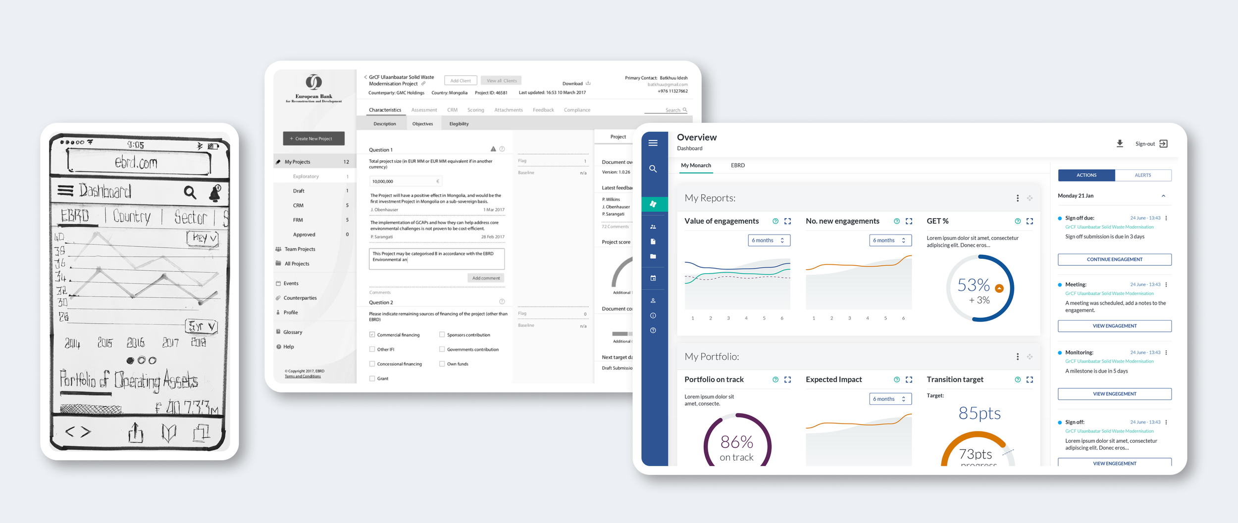 The project successfully integrated 40 disparate systems into a single intelligent platform, significantly improving operational efficiency. The user-centric design developed for the platform streamlined workflows, reduced manual processes, and enhanced overall productivity. Project Monarch established a robust, scalable platform that supports EBRD’s ongoing digital transformation and future initiatives. The comprehensive design system created prioritised user needs, ensuring a seamless and intuitive experience for all stakeholders.